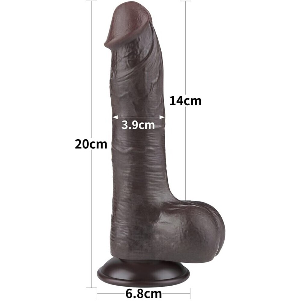 Dildo-ul 8” Sliding Skin Dual Layer Dong Black I redefinește experiența plăcerii cu tehnologia sa inovatoare și materialele de calitate. Fabricat din TPE rezistent, acest produs oferă o autenticitate remarcabilă datorită tehnologiei cu două densități. Capacitatea sa de a simula textura și fermitatea pielii îl distinge, având un strat exterior moale și un nucleu interior ferm. Cu o lungime de 20 cm și un diametru de 3,9 cm, acest dildo negru este extrem de flexibil, putând fi modelat în orice formă dorită, depășind chiar și caracteristicile naturale.