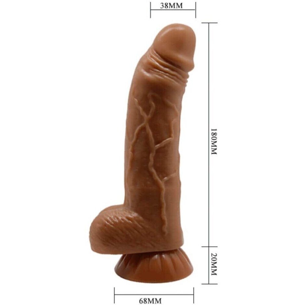 Realizat din materiale de calitate premium, TPE/TPR, acest dildo îmbină atât flexibilitatea, cât și fermitatea necesară pentru o utilizare de lungă durată. Culoarea maro naturală adaugă un plus de realism, iar testiculele modelate și ventuza robustă permit fixarea pe orice suprafață plană, asigurând o utilizare fără mâini, perfectă pentru o experiență captivantă. Designul său cu testicule și baza cu ventuză îl face ușor de manevrat, fără riscul alunecării sau deplasării.