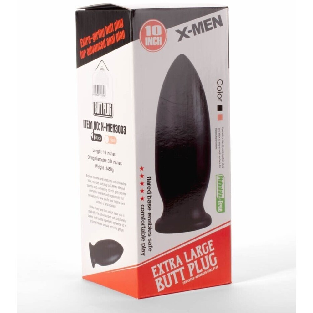 X-MEN 10″ Extra Large Butt Plug Black reprezintă o alegere remarcabilă pentru cei care doresc să exploreze noi dimensiuni ale confortului. Construit dintr-un material PVC de înaltă calitate, acest dop anal se evidențiază printr-o suprafață netedă și mătăsoasă, concepută să ofere o experiență plăcută. Cu o lungime de 25,4 cm și un diametru de 9 cm, acest dispozitiv a fost gândit să faciliteze o adaptare graduală, având o formă conică care permite o creștere treptată a dimensiunii.