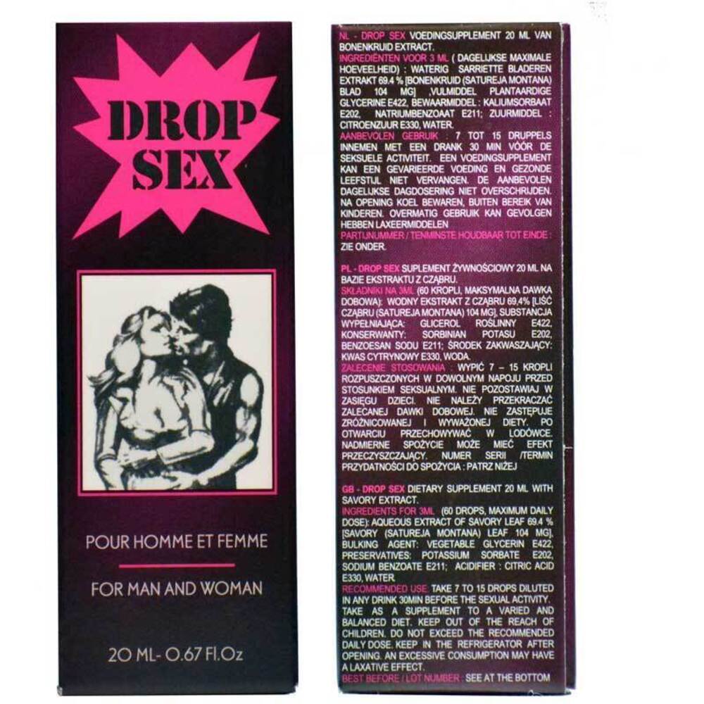 DROP SEX 20 ml este un preparat modern conceput pentru a stimula energia și a îmbunătăți sensibilitatea la stimuli. Aceste picături afrodisiace, destinate cuplurilor, oferă o experiență deosebită, intensificând plăcerea și satisfacția. Ingredientele atent selecționate acționează rapid, permițând utilizatorilor să observe efectele fantastice prin adăugarea a câtorva picături în orice băutură.