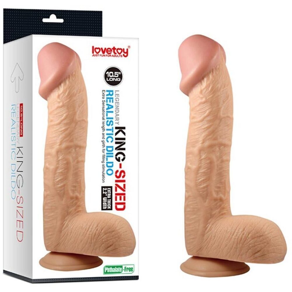 Dildo-ul 10.5″ Legendary King-Sized Realistic Dildo este o replică impresionantă, realizată din PVC de o calitate foarte bună, având o lungime de 27 cm și un diametru de 5,6 cm. Cu un design deosebit, acest model reușește să surprindă prin detalii realiste, cum ar fi venaturile pronunțate și forma curbată, concepute pentru a spori experiența utilizatorului.