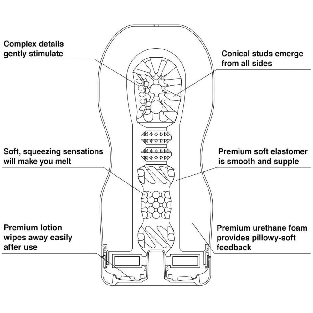 PREMIUM TENGA ORIGINAL VACUUM CUP GENTLE aduce o experiență unică prin combinația sa de tehnologie avansată și materiale premium. Cu un manson din elastomer intern, mai gros cu 1,5x decât versiunea standard, acest produs oferă o stimulare constantă de la prima utilizare până la final. Forma sa ergonomică și dimensiunile de 4,5 cm în diametru și 15,5 cm în lungime sunt ideale pentru a garanta confortul și eficiența fiecărei utilizări. Culoarea alb aurie și materialul TPE asigură o estetică rafinată și o senzație naturală la contact.