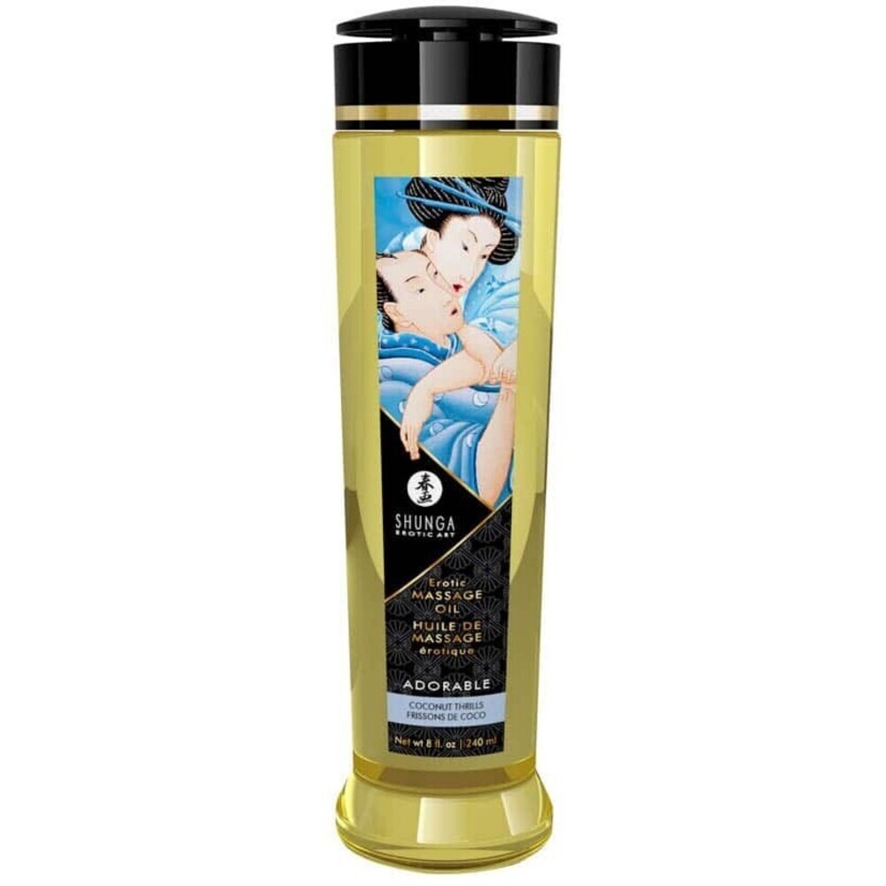 EROTIC MASSAGE OIL 240 ml / 8 oz COCONUT THRILLS este un ulei de masaj ideal pentru cei care doresc să creeze momente de relaxare și confort. Acest produs, provenit din Canada, conține o combinație atent selecționată de uleiuri, inclusiv ulei de migdale, ulei din sâmburi de struguri și ulei esențial de cocos, fiecare având proprietăți energizante și stimulatoare. Cantitatea de 240 ml asigură o utilizare îndelungată, fiind potrivit pentru cupluri care doresc să îmbogățească experiențele lor.
