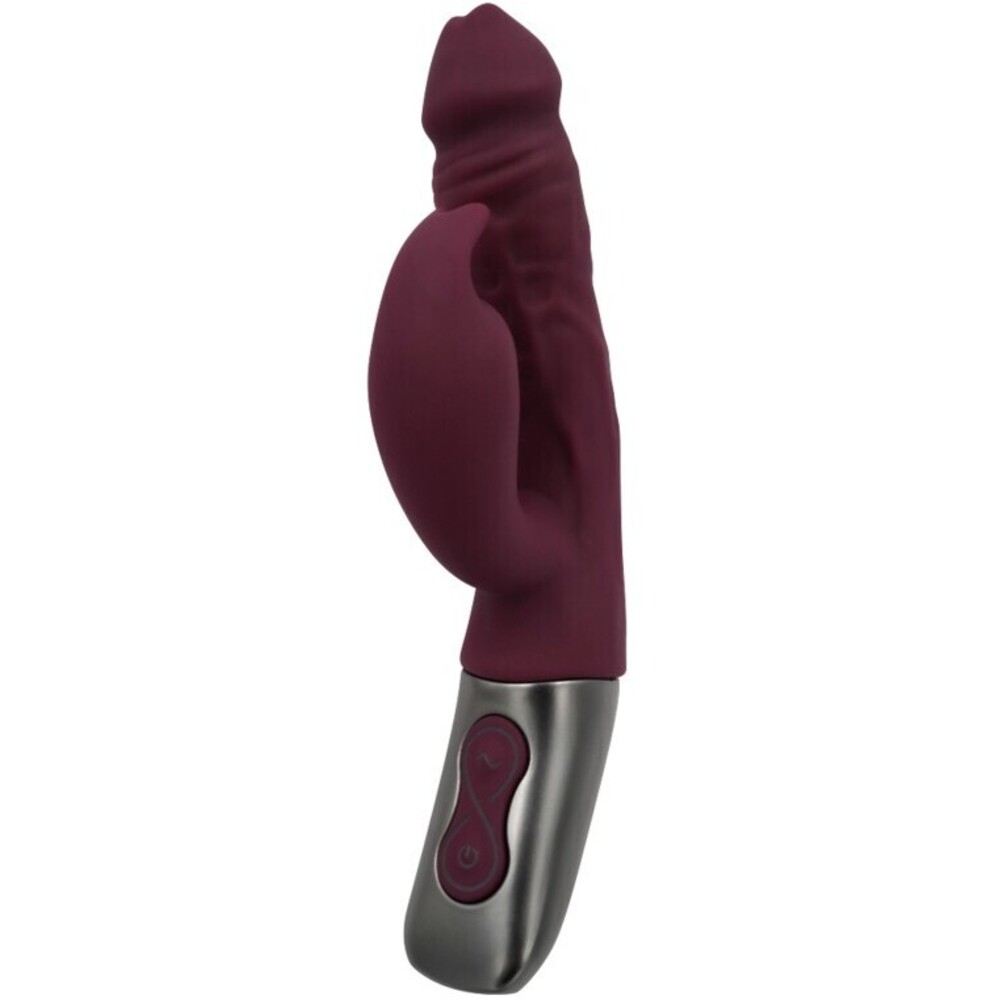 Vibratorul TITANZ 7″ Silicone Rechargeable Vibrator In Rubine Red este realizat din silicon de calitate, având o suprafață cu textură ușor ribbed, care facilitează utilizarea confortabilă. Acest vibrator, cu o lungime de 17,7 cm și un diametru de 2,5 cm, oferă o experiență captivantă prin cele 10 funcții de vibrație și cele 10 funcții de rotație disponibile în vârful său. Designul său special permite stimularea eficientă a zonei g, în timp ce stimulatorul pentru clitoris dispune, de asemenea, de 10 funcții de vibrație, asigurând o experiență adaptabilă și plăcută.