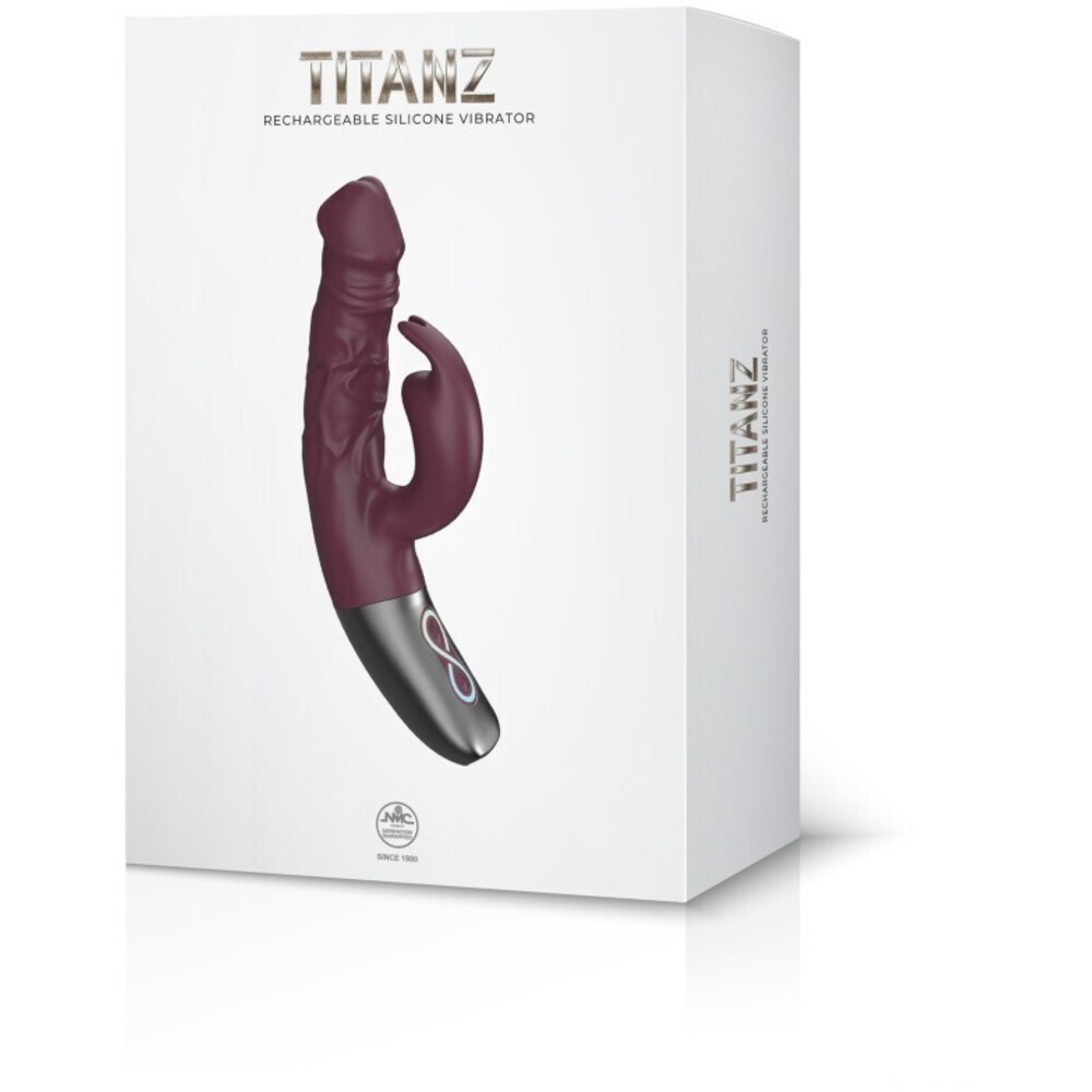 4897078635533-TITANZ 7" SILICONE RECHARGEABLE VIBRATOR IN RUBINE RED