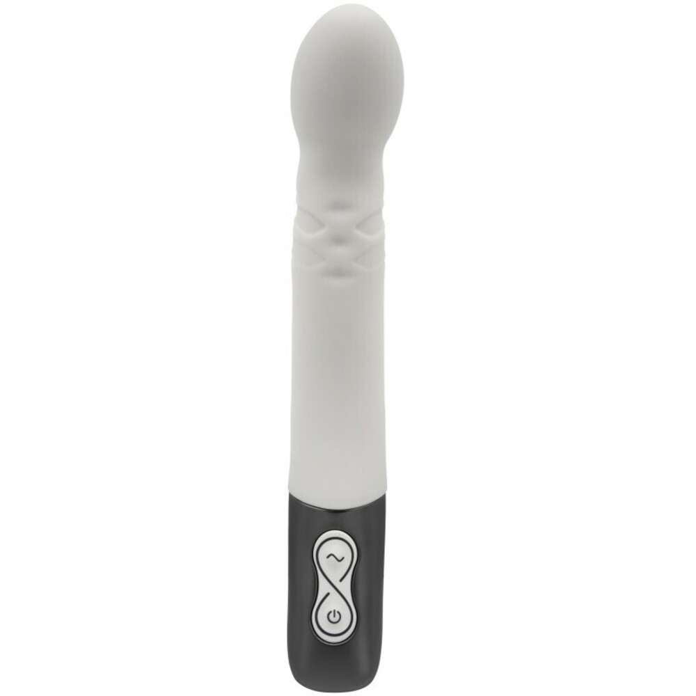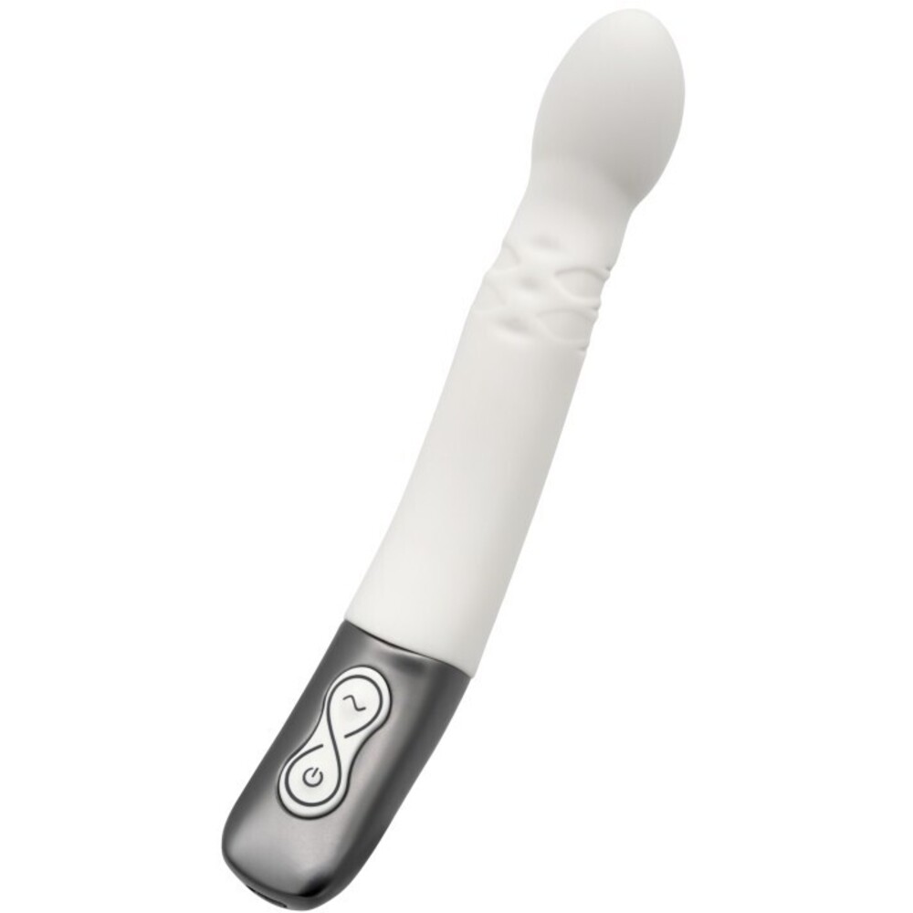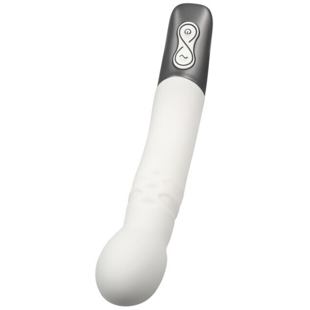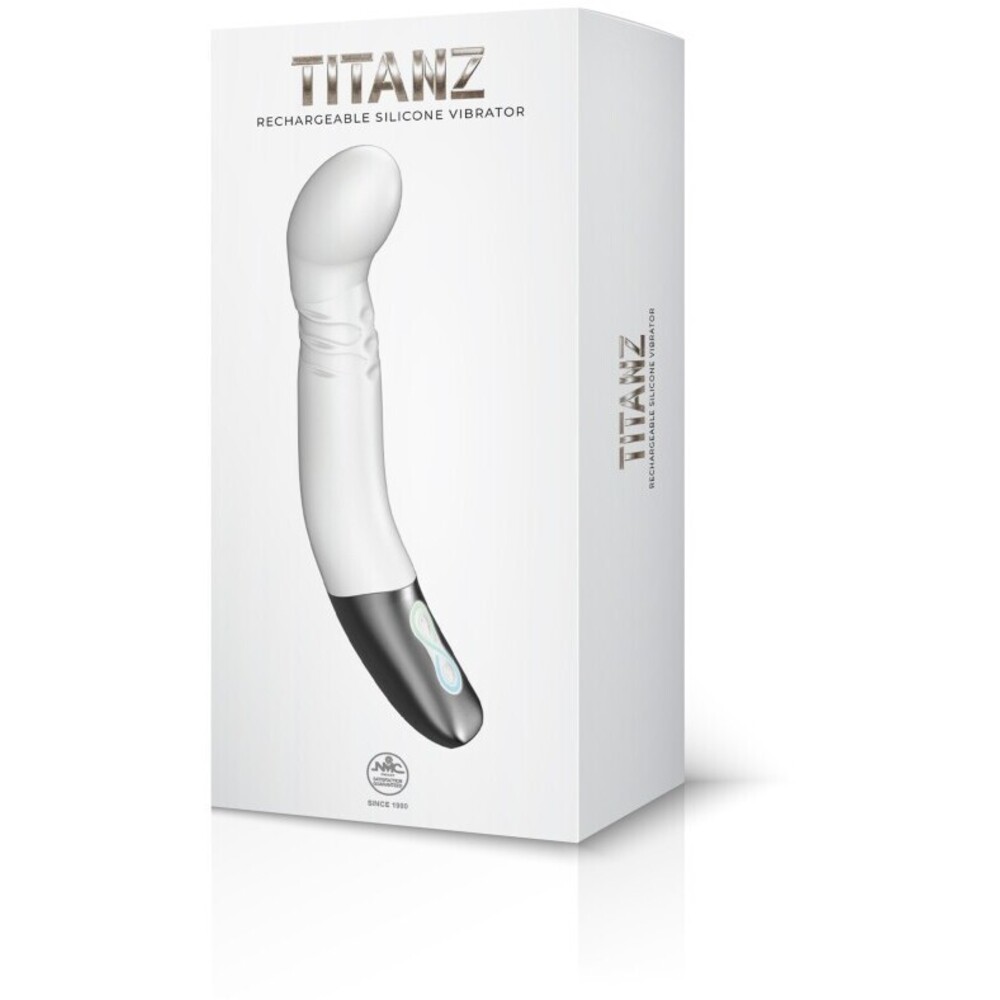 Vibratorul TITANZ 8″ SILICONE RECHARGEABLE VIBRATOR IN IVORY WHITE este un dispozitiv inovator, conceput dintr-un material de silicon de calitate, având o suprafață ușor texturată. Acest vibrator dispune de un cap rotativ special, care permite stimularea precisă a punctului G, având 10 funcții de vibrație și 10 funcții de rotație, pentru o experiență adaptabilă și personalizată.