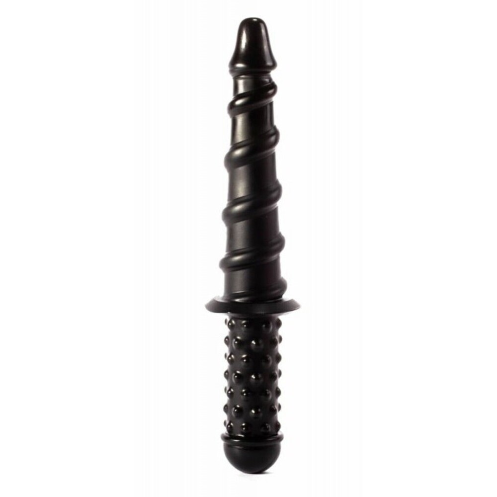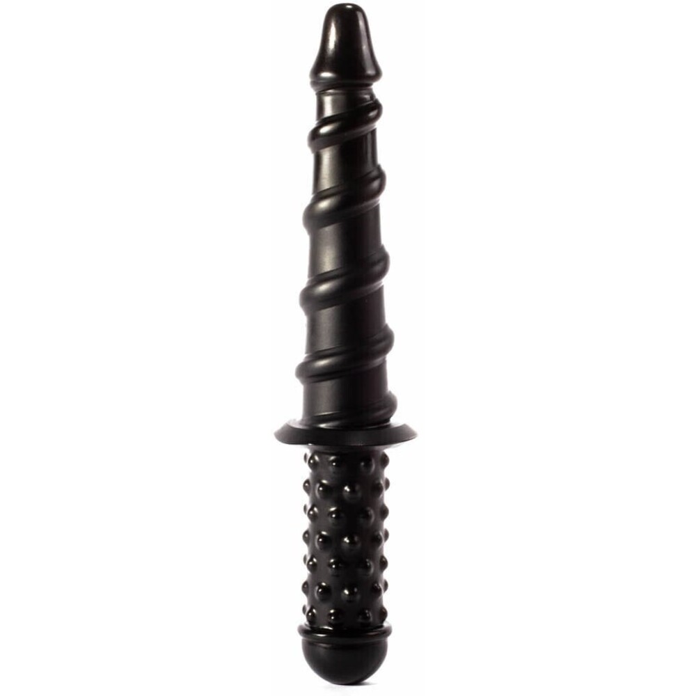 Dopul anal X-Men 13.8″ Sword Handle Butt Plug Black I este un dilatator și relaxant pentru sfincter cu un design unic, realizat din PVC, de culoare neagră, având o lungime de 35 centimetri și un diametru de 5,5 centimetri. Forma sa include un stimulator circular și un mâner asemănător unei săbii.