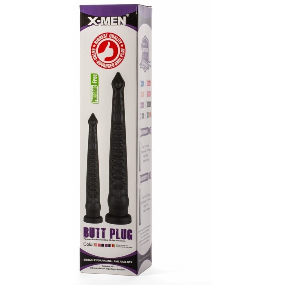 Dopul anal X-Men 17.32″ Butt Plug PVC Black este un dispozitiv dedicat stimulării și relaxării sfincterului, având ca obiectiv oferirea unei experiențe confortabile și plăcute în timpul utilizării. Confectionat dintr-un material de calitate, cu o textură catifelată și prietenoasă cu pielea, acest produs asigură o senzație de plăcere la atingere.