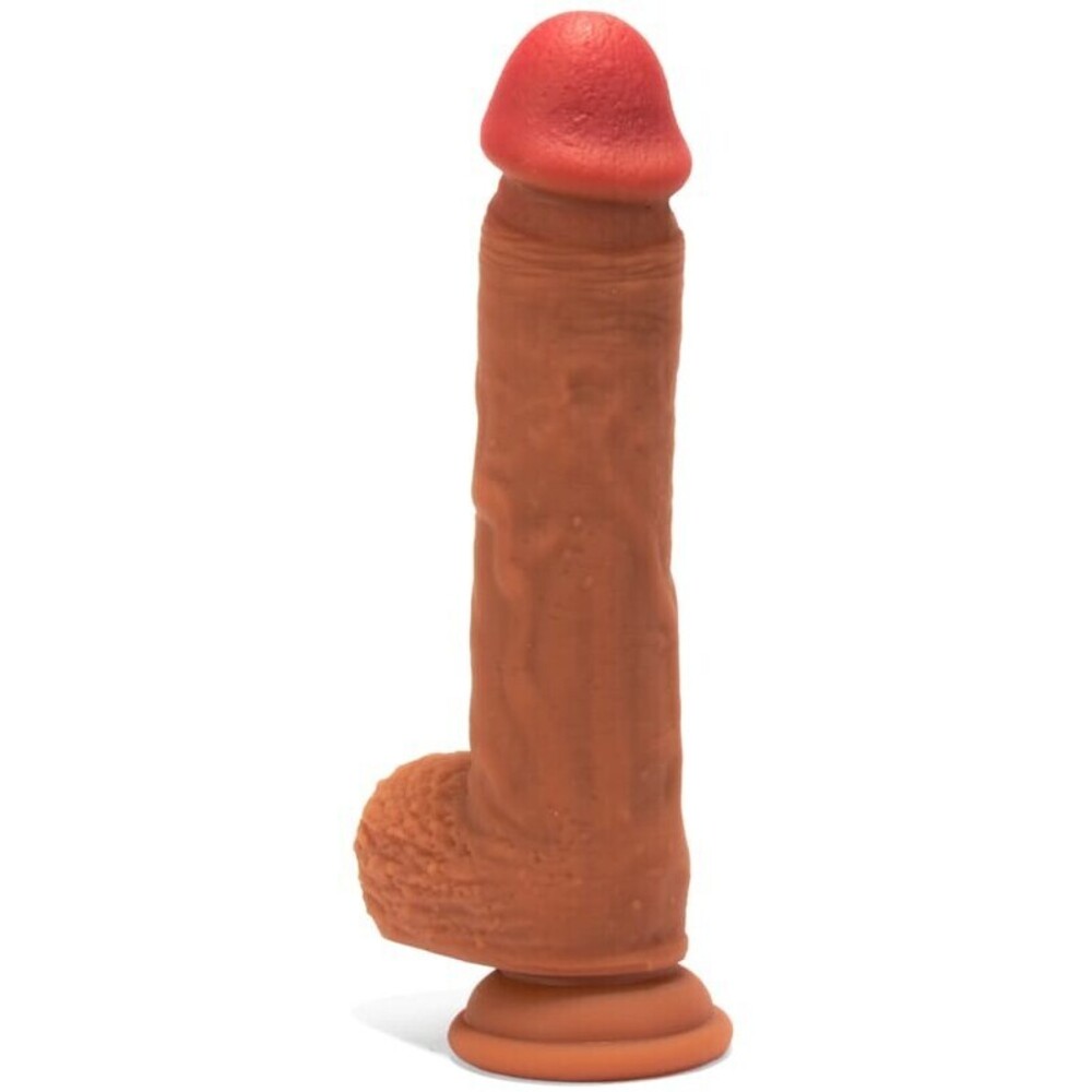 X-MEN 8.8 inch Dual Layered Dildo Brown este conceput pentru a oferi o experiență realistă și robustă, datorită designului său stratificat, care combină un strat exterior moale cu un nucleu interior ferm. Această structură duală este realizată din silicon de calitate, un material cunoscut pentru proprietățile sale asemănătoare țesutului uman, ce oferă un echilibru ideal între flexibilitate și durabilitate. Dildo-ul are o suprafață texturată, vascularizată, cu detalii anatomice ce includ testicule, ceea ce îi adaugă un plus de autenticitate.